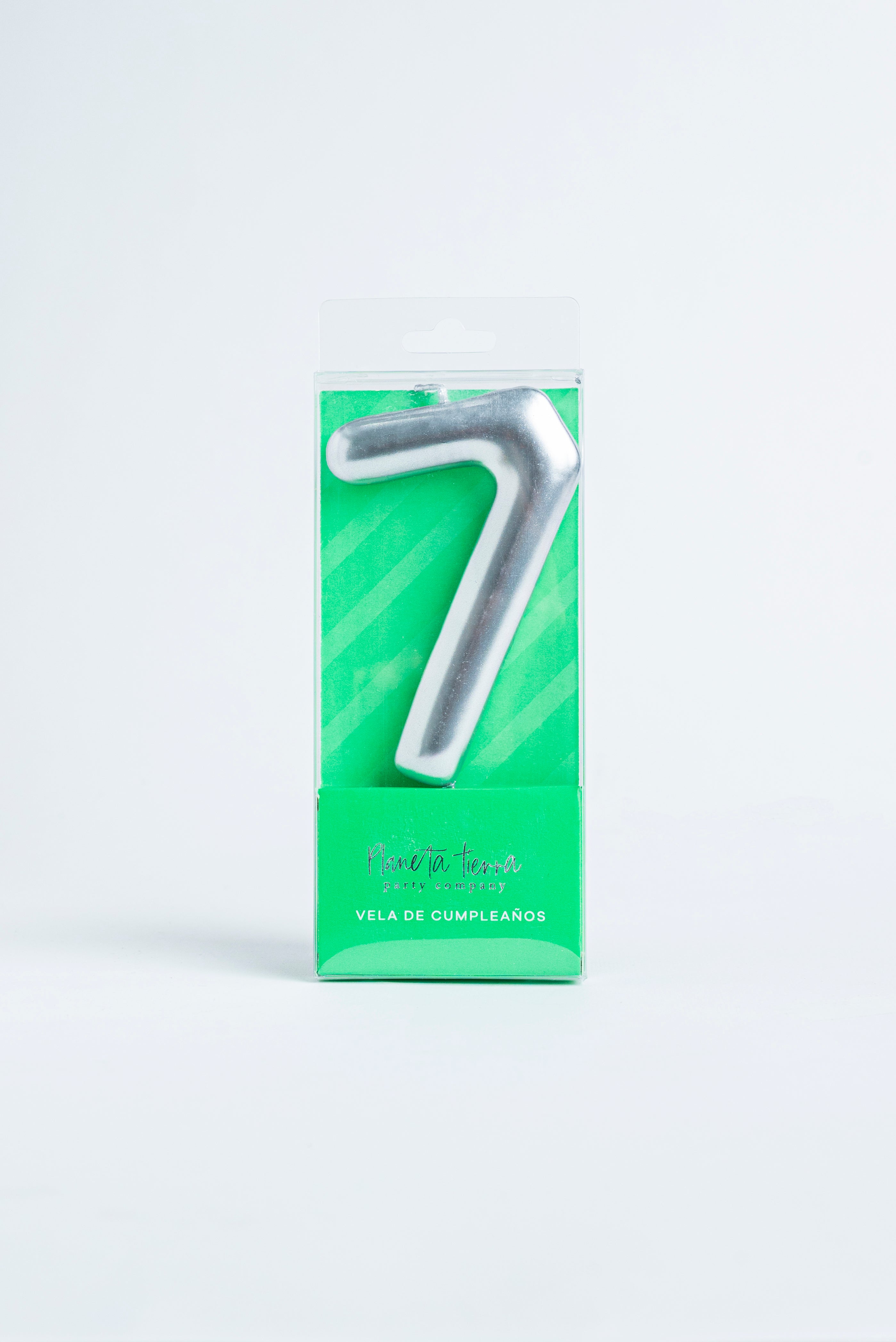 Incluye 1 vela de cera color plata de 8.5 cm de largo.