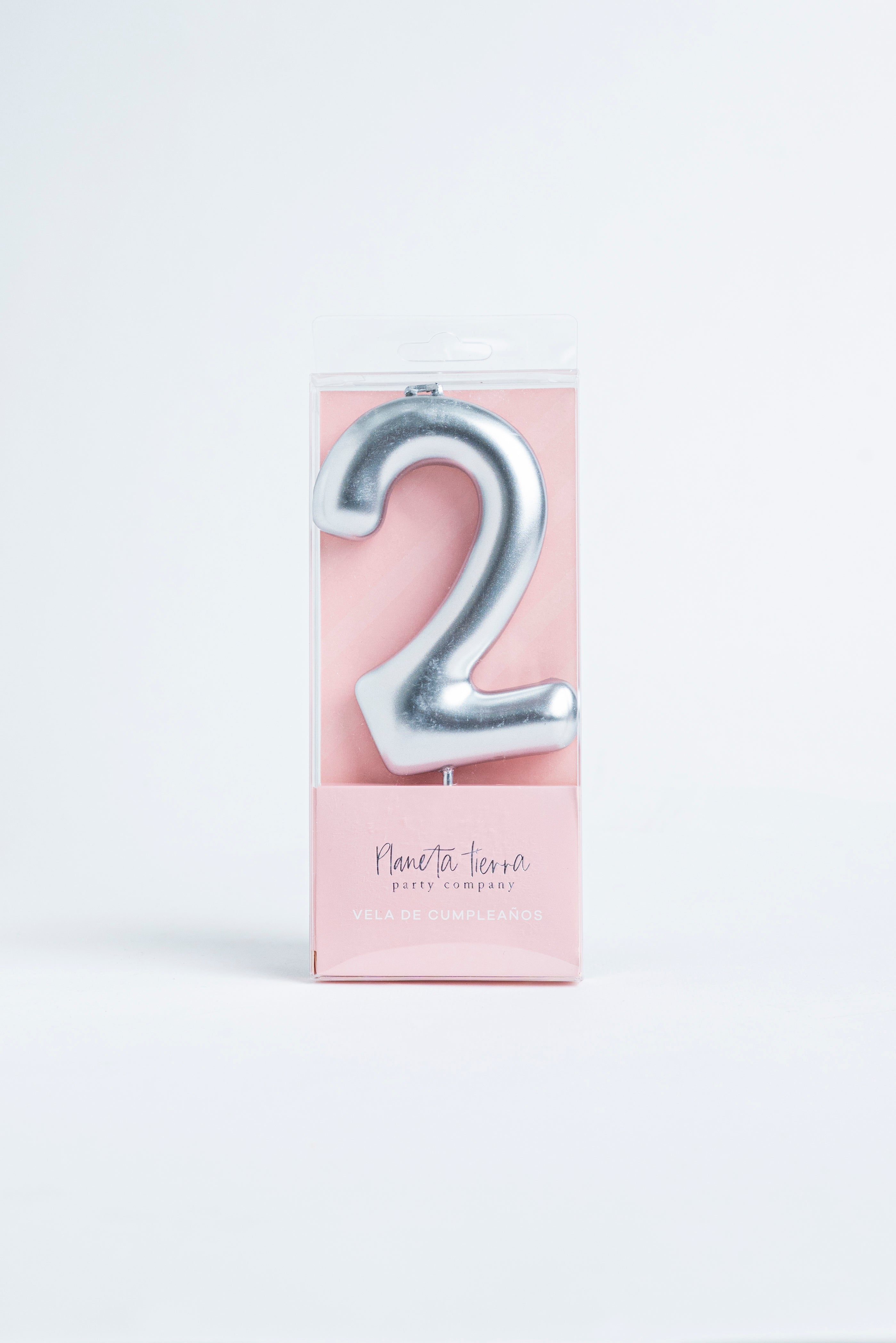 Incluye 1 vela de cera color plata de 8.5 cm de largo.