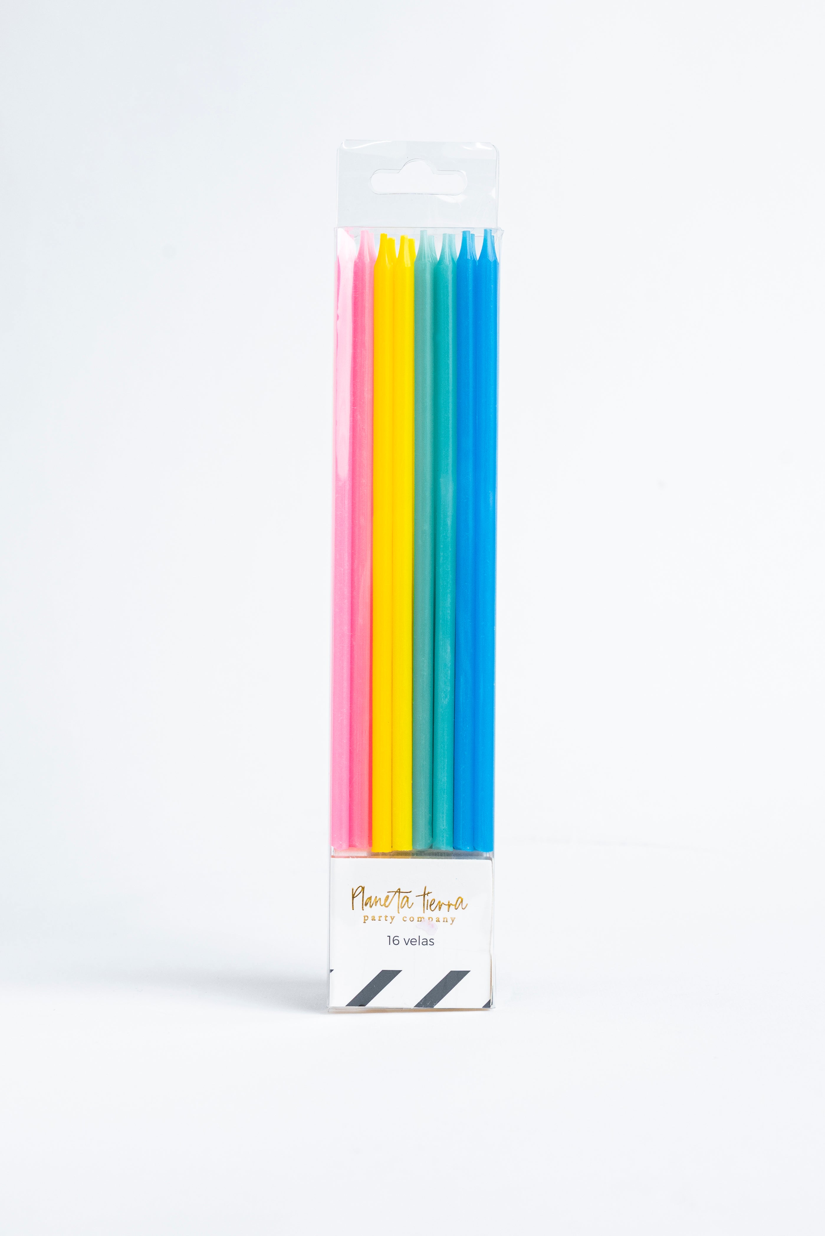Cada paquete incluye 16 velas de cera de 21 cm.